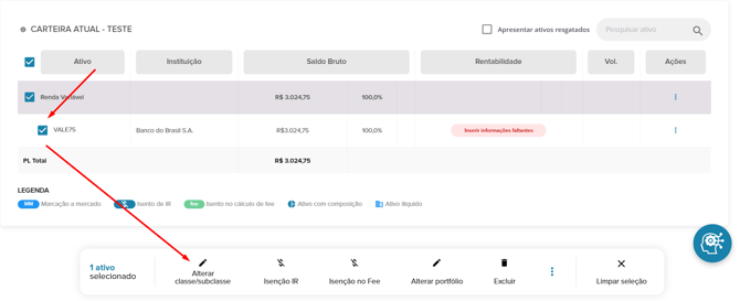 Selecione o ativo desejado (marcando o checkbox ao lado do ativo)