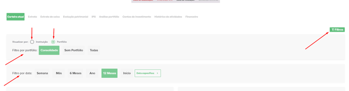 A Plataforma de consolidação de carteiras permite a criação de filtros relacionados aos ativos presentes na carteira.