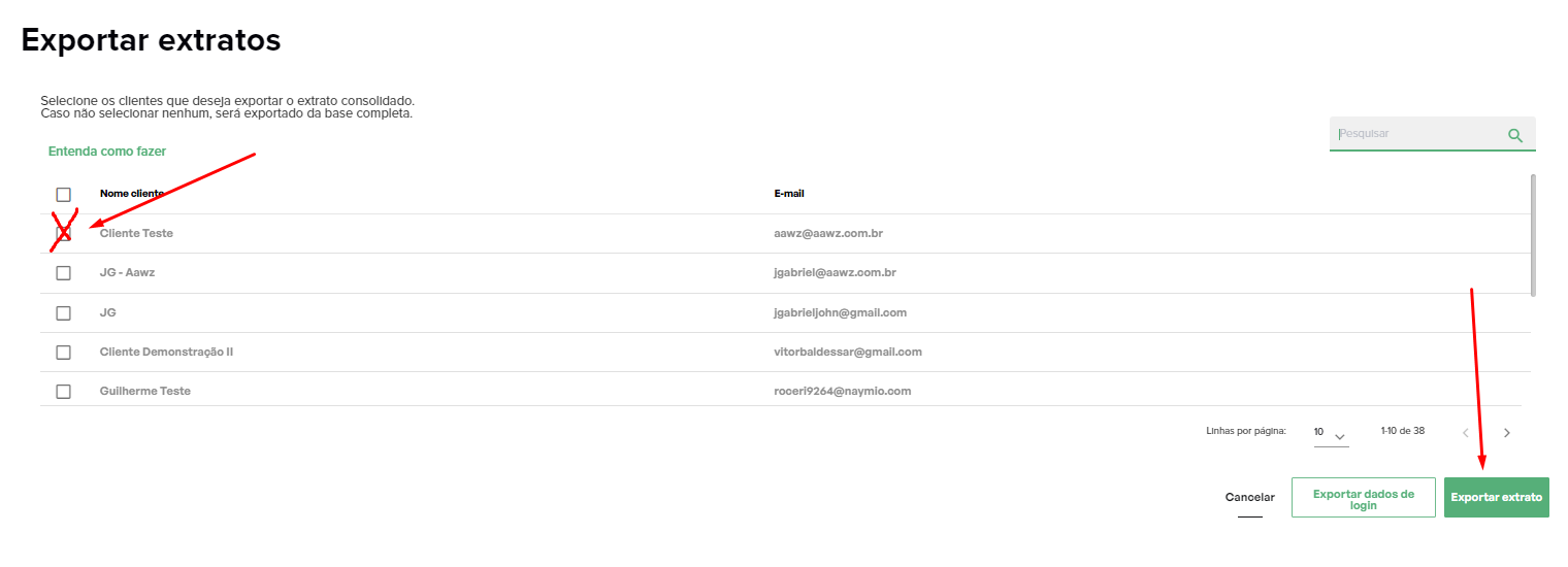 Para extrair a consolidação de todos os ativos e movimentações presentes em um cliente, você pode utilizar a função de extrair extrato da plataforma.