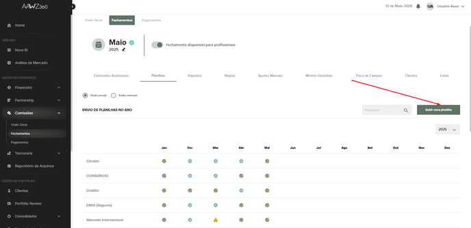 - No canto superior direito, clique em “Subir nova planilha”.